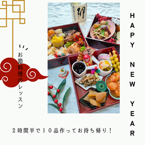 早めに、受講して年末に備えるも良し!12月26日まで開催しておりますので、レッスンで作って、お重箱に詰めるも良し!