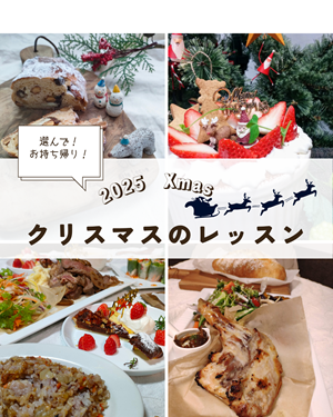 そのほか、『おうちごはん』をはじめ、『お菓子のレッスン』『パンのレッスン』『キッシュのレッスン』『5品作り置き』などレギュラーレッスンも開講中です。詳しくは『2025年11月のレッスン』のページをご覧くださいませ。