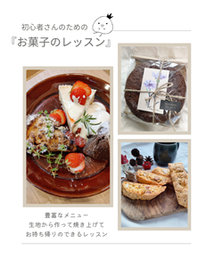 1度のレッスンで4種類のお菓子を作り焼き上げます。お菓子の種類はおすきなものをお選び頂けます♪